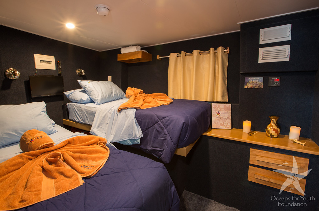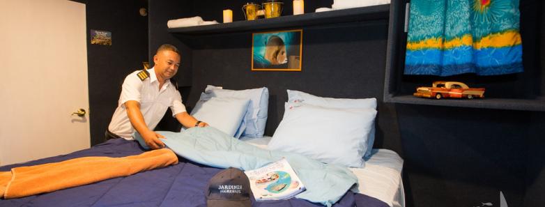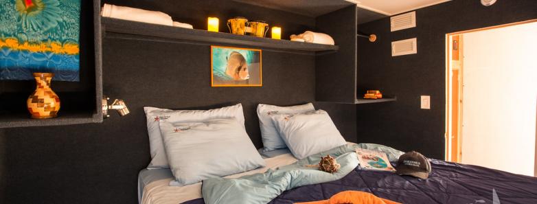 The Jardines Aggressor II sleeps 24 guests in privacy and comfort. She includes two Balcony Suites, each having double side-by-side beds, ten Deluxe staterooms, each with single side-by-side beds. Each stateroom has its own private bathroom with a toilet and shower. All staterooms have air conditioning climate controls.