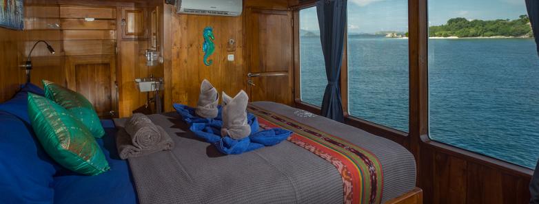 The Jelajahi Laut offers guests three types of accommodations: the Sea View Cabin on the Upper Deck, the Deluxe Cabin, and the Standard Cabin, both located on the Lower Deck. All cabins are fully air-conditioned.