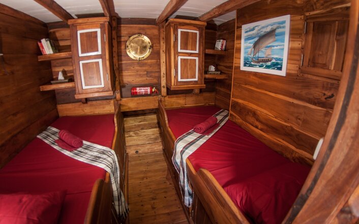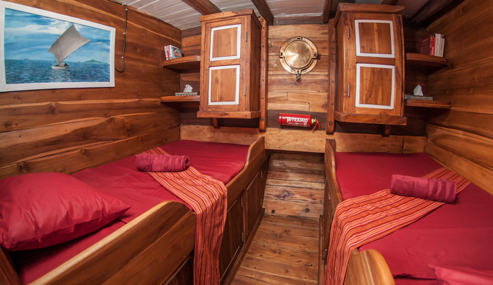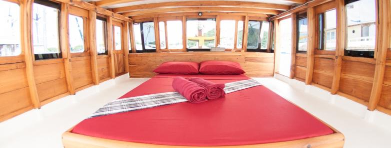 - Upon collection from the Harbour side, our crew and cruise team welcome you aboard, after a short tour and explanation about the ship and your safety on board, we will be setting up the dive/snorkel equipment and checking you in to your cabins... The boat will set sail at midday in the direction of Sebayur as you enjoy a light lunch together... We will do a check dive/snorkel near Sebayur Kecil before late afternoon beach activities... Take a walk on the sands, a swim in the shallows or jump in a Kayak whilst looking forward to a supper and the first of many breathtaking sunscapes...