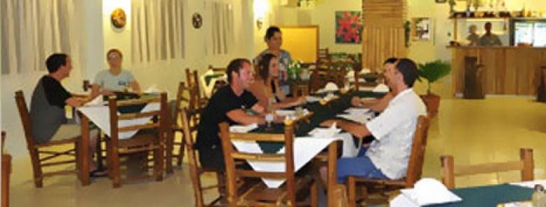 Dine in the islands only air-conditioned restaurant, or enjoy the comfort of outside dining by the swimming pool. Western and local foods, think breadfruit chips and incredibly fresh fish. They also offer Micronesia's best pizza. Where ever possible, they use locally grown organic fruit and vegetables from their own garden and local farmers on Kosrae.