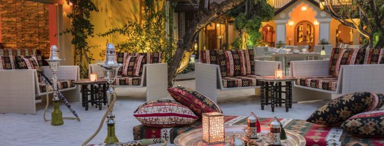 • Arabic colours, elegant design and a wide selection of flavoured shisha - an atmospheric setting to share a moment with our beloved ones, with our delicious mezzes, colourful cocktails and the fruity smokey from your shisha.
