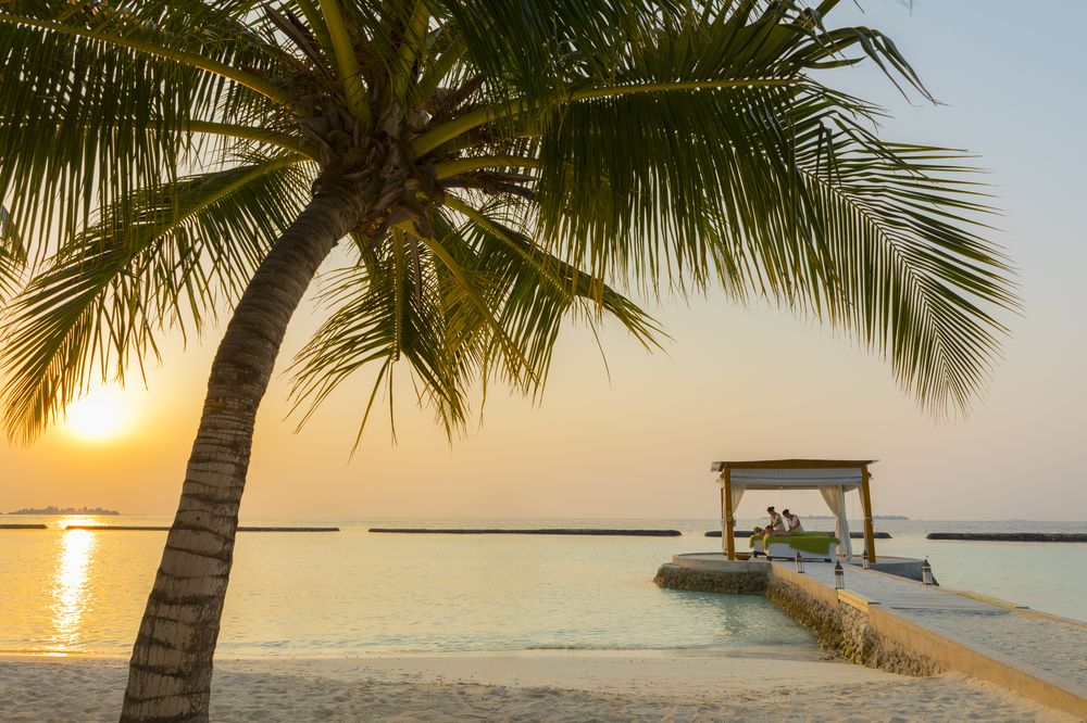 • On the islands western and eastern end. Arrive just in time, order a light snack. A cocktail to hand, sand beneath your feet. Dazzling colours over the Indian Ocean. A magnificent sunset. Quiet all around, only the hushed chatter of contented guests.