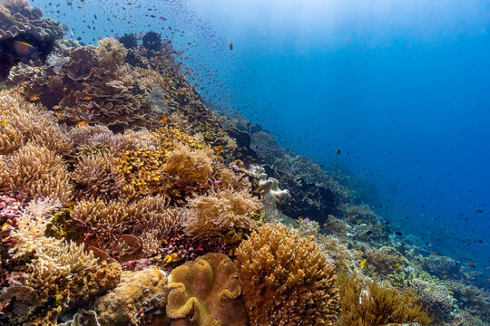 You can expect to see an abundance of small and medium reef life including barracudas, surgeonfishes, bumphead parrotfish, trevallies, giant trevallies, spadefish, Napoleon wrasse, tunas, bonitos, waow, manta rays, and mobula rays.