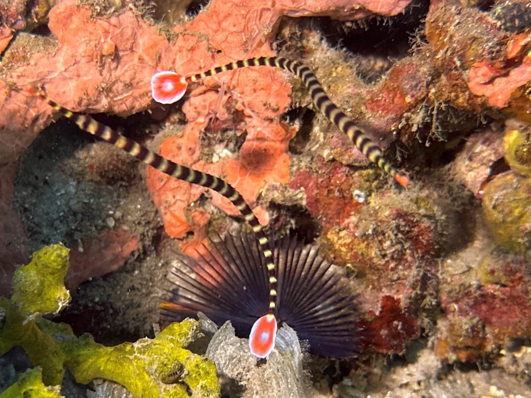 Pygmy seahorses decorate the fans, allied cowries are nestled on the soft corals and youll find a host of different nudibranchs and flatworms.