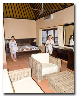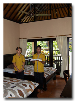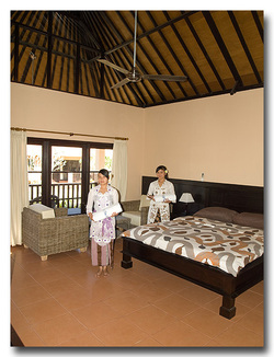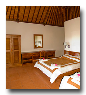 [Read More: Bali Dive Travel Guide]There are 32 guest rooms each with air-conditioning, fan, en-suite bathroom with hot & cold water, refrigerator & mini-bar, tea & coffee making facilities. Each room has a verandah with table & chairs facing the shaded garden and overlooking the three large swimming pools.