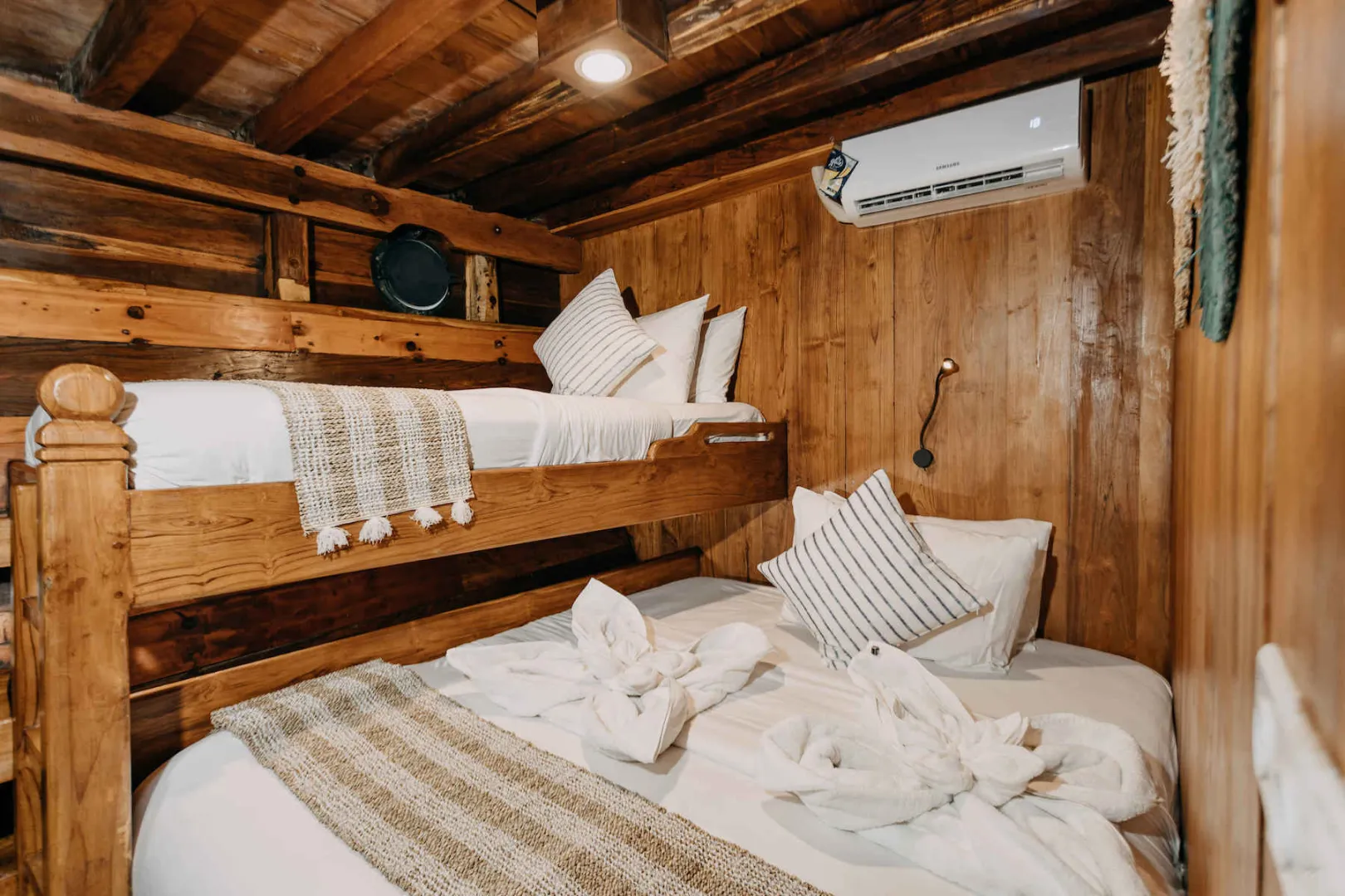 The spacious Triple Bed Cabins provide flexible accommodation with air-conditioning and en-suite bathrooms, ideal for small groups or families.