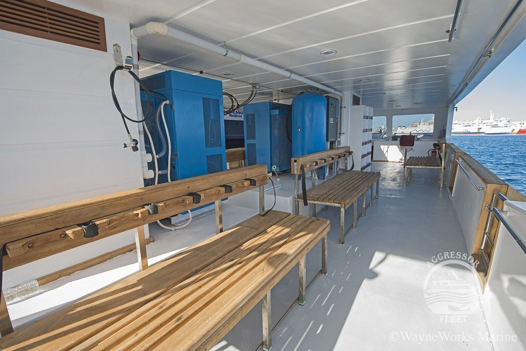 Maldives Aggressor II is a luxury liveaboard offering world-class diving, featuring spacious cabins, expert guides, and thrilling encounters with manta rays, whale sharks, and vibrant coral reefs.