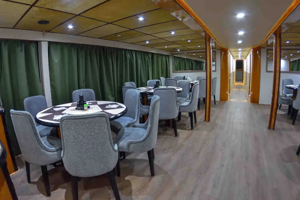 The Andromeda offers three types of accommodations: the Twin-Bed Cabin (10), the Queen Bed Cabin (2), and the Honeymoon Suite (1.) Each room can comfortably accommodate up to two guests. Each cabin is equipped with air conditioning, en-suite bathrooms containing hot-water showers, sinks, and toilets, and fresh bed sheets and towels are provided for all guests.