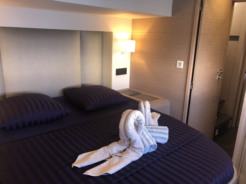The hostess is responsible for all meals and service aboard. Guests are served table water and lemonade throughout the day, but they can also purchase mineral water, sodas, and alcohol at the on-board bar.