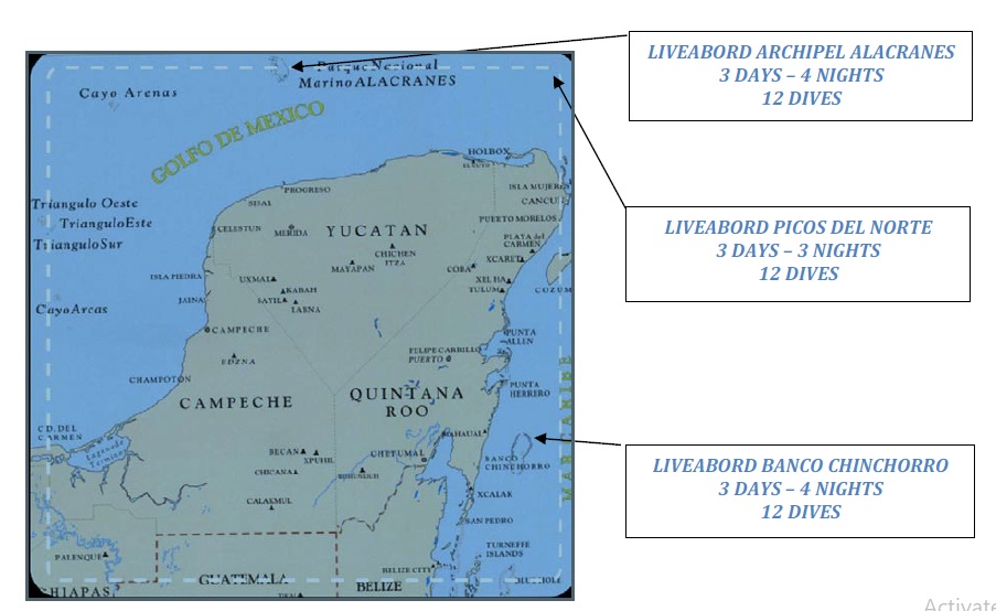 - Day 7: picos 2 (2 dives)+ navigation to reach Cancun