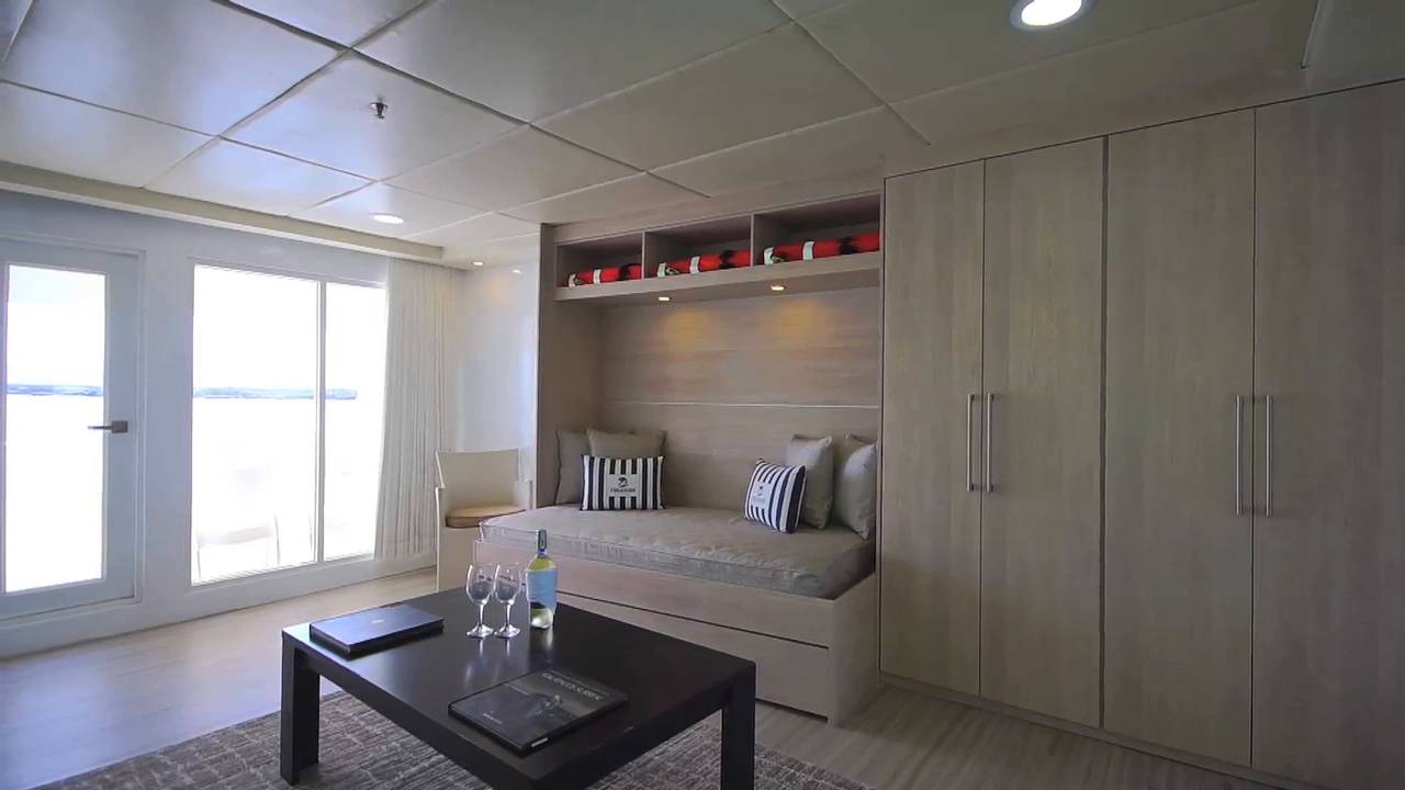 Located on the Main Deck, the Balcony Stateroom features a queen bed and a single bed, air conditioning, a private bathroom, and a private balcony with a sea view.