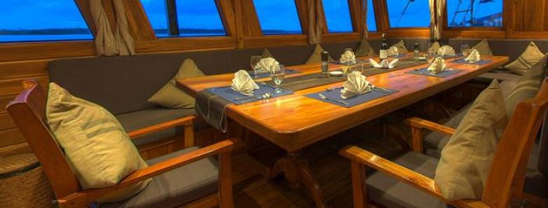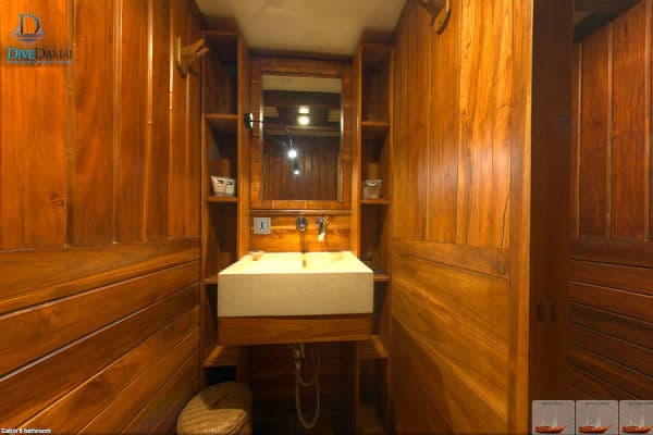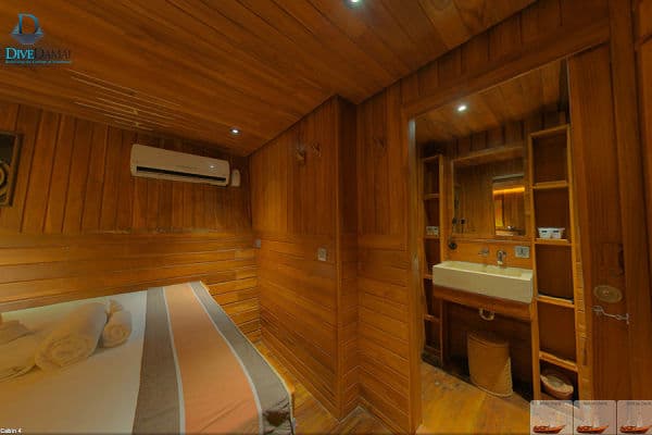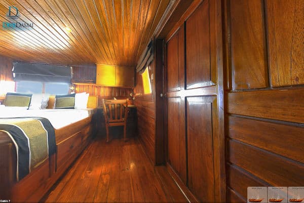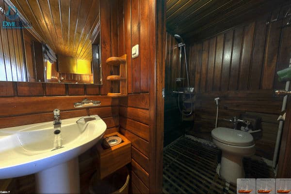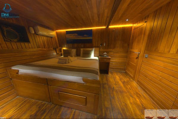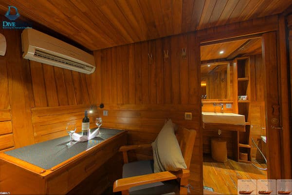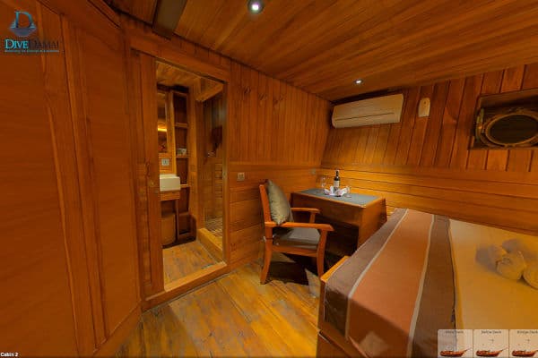 The vessel has 7 staterooms with a choice of single cabins, twins, doubles or two spacious master cabins. Cabins 1 and 3 can be configured with a double bed or two single beds, while Cabins 2 and 3 contain a double bed. Cabin 5 and 6 are the biggest cabin at 40sq. meters and 35sq. meters, respectively. Both can have a king-sized bed or two large single beds and offer an amazing view of the ocean. Cabin 6 also comes with its own private balcony. Cabin 7 can be configured with a king double or twin beds and has direct access to the sun deck. All cabins come complete with a desk, wardrobe, reading lights, and a bedside table. All rooms are also fully airconditioned.