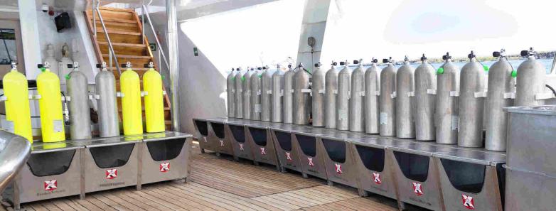 Air Systems: 2 electric Bauer compressors with nitrox membrane, producing 32% nitrox, bank storage