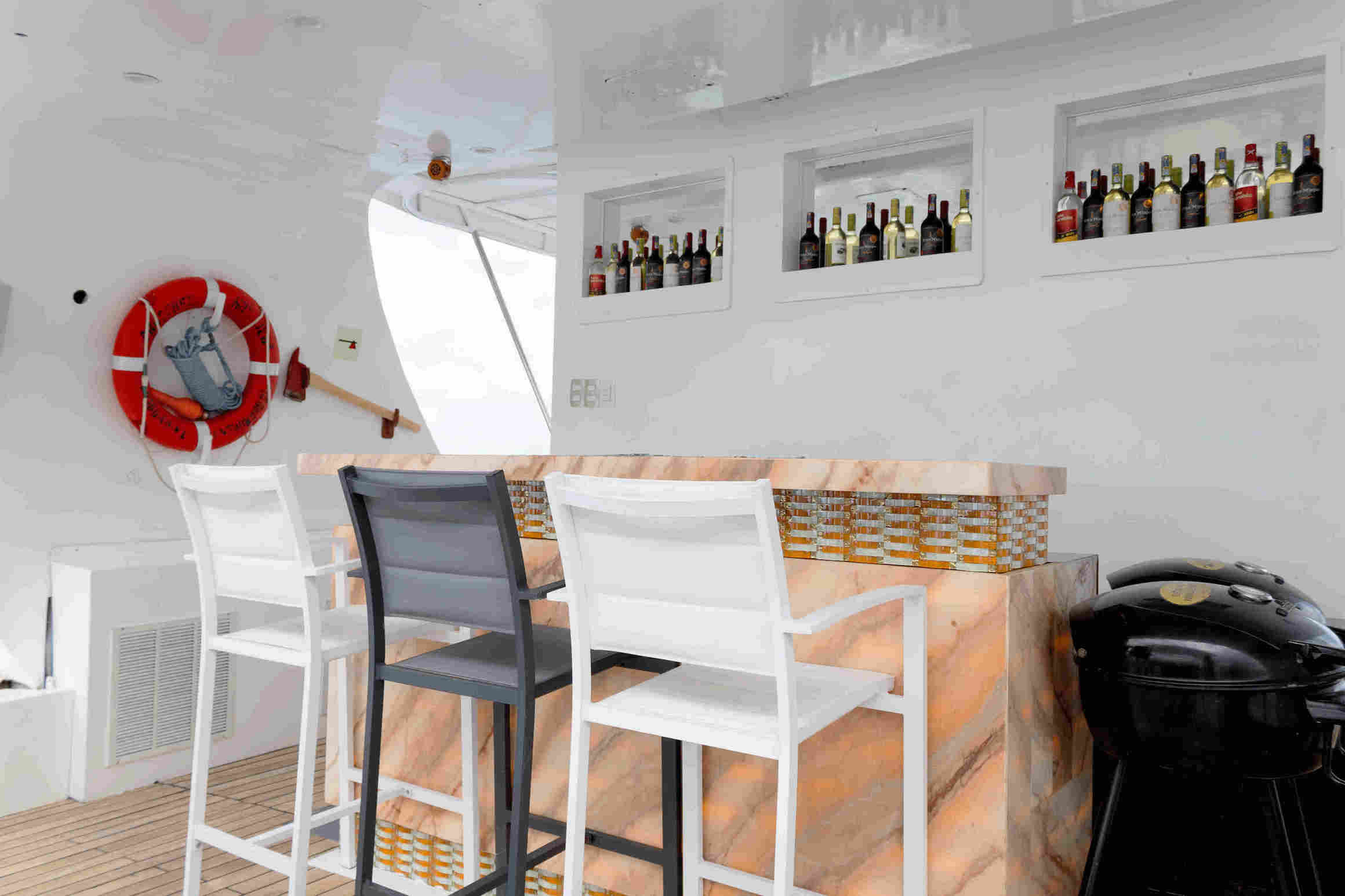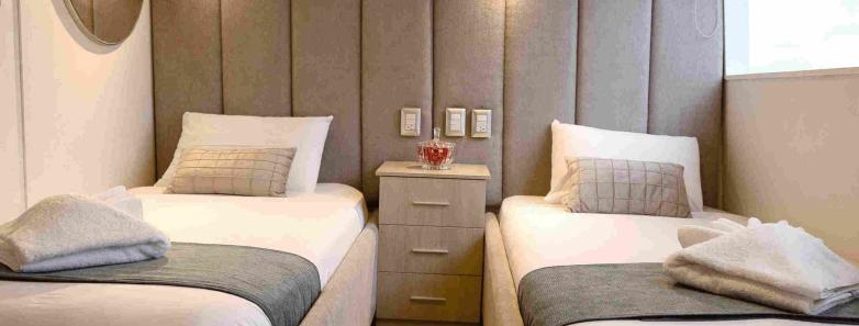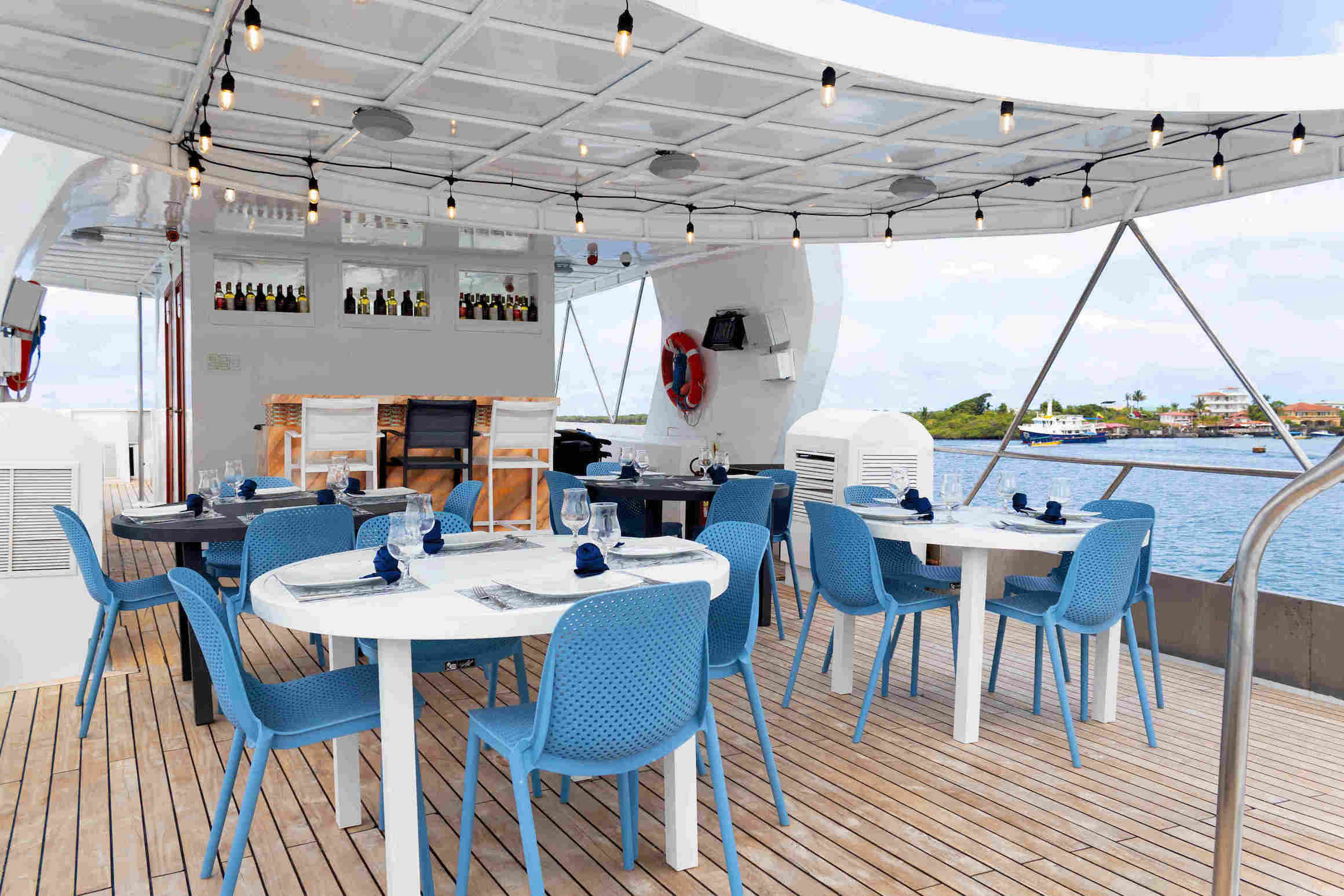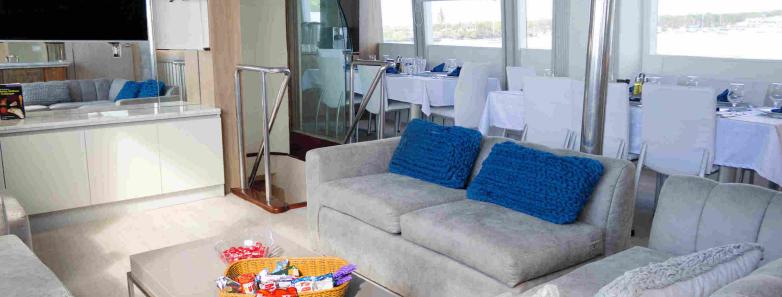 The 16-passenger Humboldt Explorer provides 8 air-conditioned rooms located on the main and lower decks; each has a private bathroom, flat screen television and ocean view. All rooms except rooms 3 & 4 (forward below deck) can be converted to either one queen bed or two twin beds.