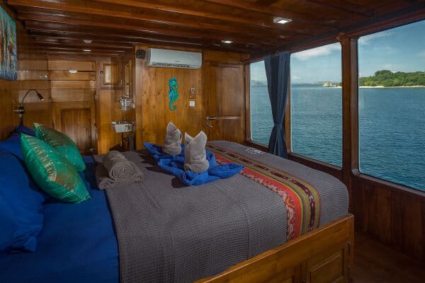 The Jelajahi Laut offers guests three types of accommodations: the Sea View Cabin on the Upper Deck, the Deluxe Cabin, and the Standard Cabin, both located on the Lower Deck. All cabins are fully air-conditioned.