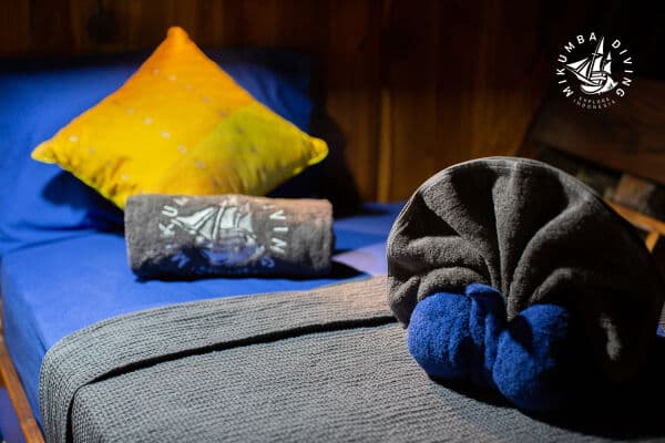 All meals are served aboard the Jelajahi Laut, including snacks and fruit, with coffee, tea, and mineral water served throughout the day. Soft drinks are also available.