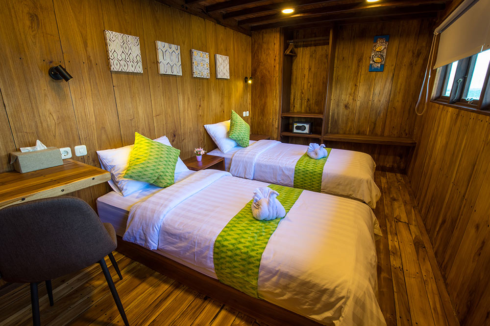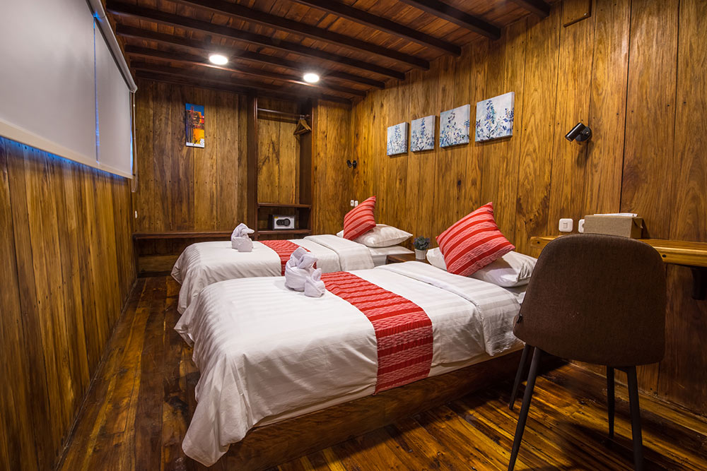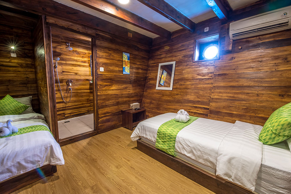 Mola Mola 1 Liveaboard is equipped with 8 beautifully appointed air-conditioned cabins, consisting of 2 double bedrooms and 6 twin bedrooms, each with its own ensuite bathroom and hot water shower.