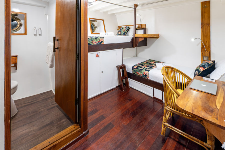 Cabins 7 and 8, located on the main deck, are sea-view double bed cabins.
