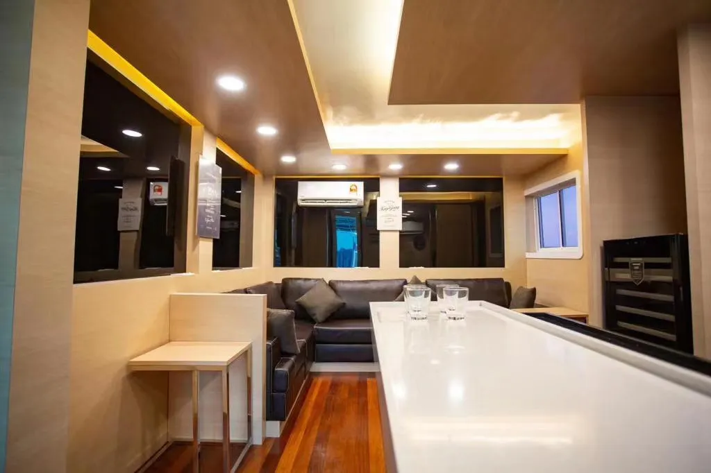 The Double Bed Cabins are spacious cabins with double beds and large sea-view windows, offering a cozy retreat ideal for couples.