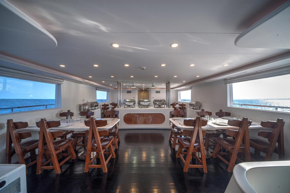 Lucy sleeps up to 20 guests in 10 double cabins with individual air conditioning, small fridge, private shower, and toilet. Bath towel and bathrobe provided to each diver.