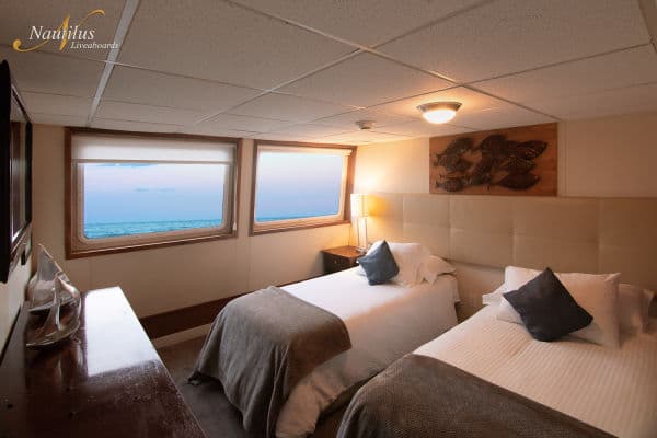Nautilus Explorer is a luxury liveaboard offering world-class diving in Mexico, featuring spacious cabins, expert guides, and thrilling encounters with great white sharks, manta rays, and whale sharks.