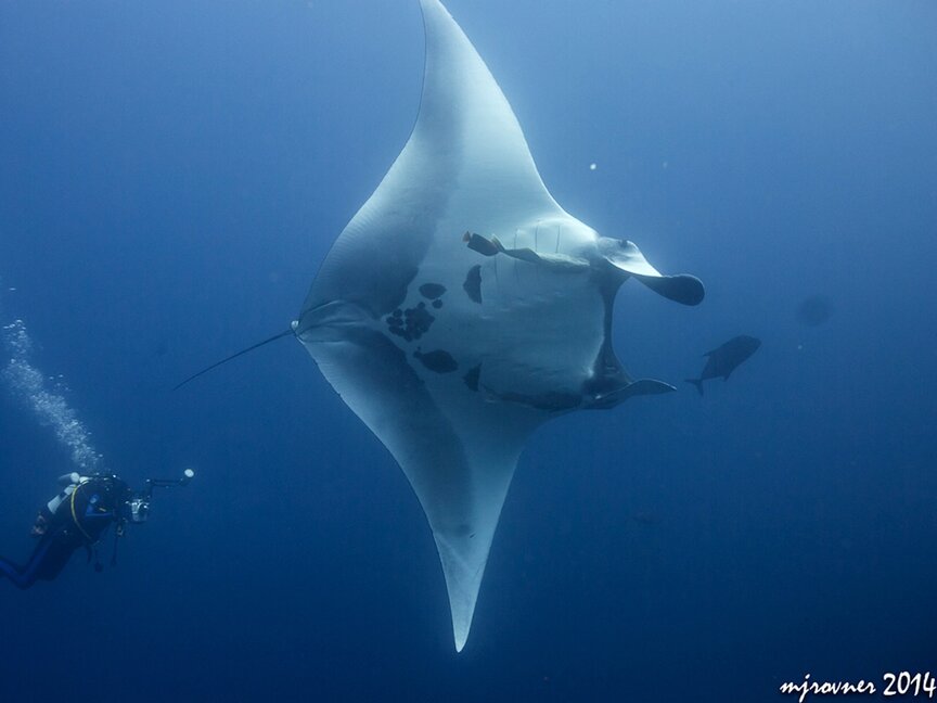 Huge manta rays, sharks, and humpback whales are some of Socorros underwater stars.