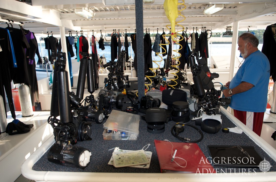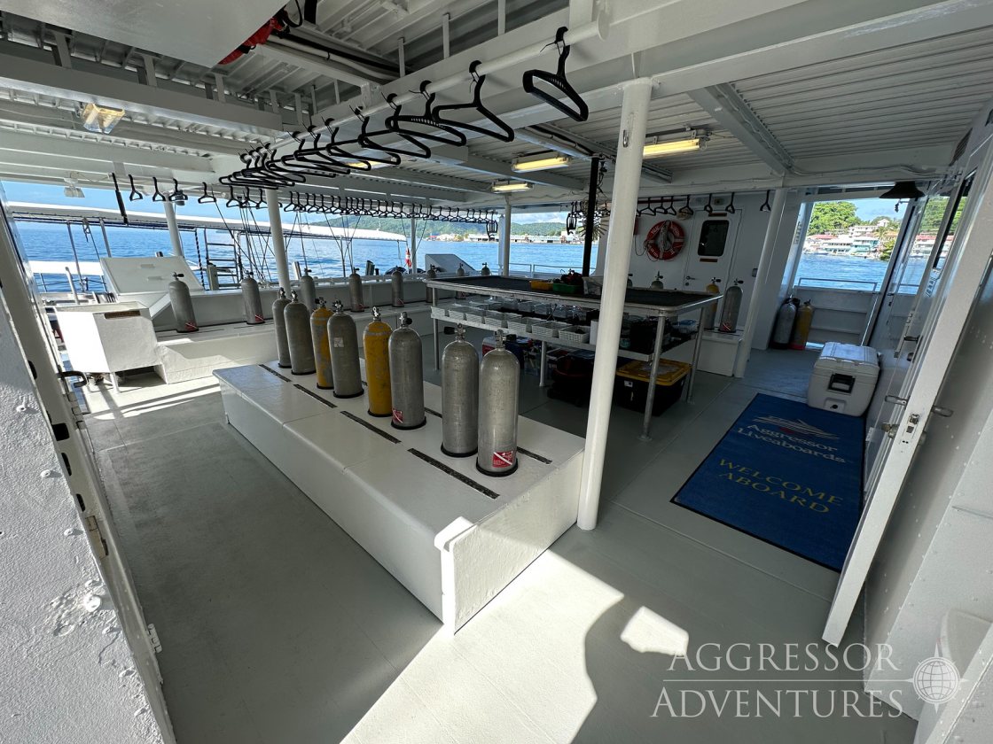 The menu onboard is varied and plentiful, with a variety of American feasts, barbecues and local cuisine. The Aggressors selection includes fruit juices, soft drinks, iced water, iced tea, coffee, and a limited selection of local beer and wine, which are complimentary. Due to the high duty charged on liquor, we suggest you bring your favorite brand.