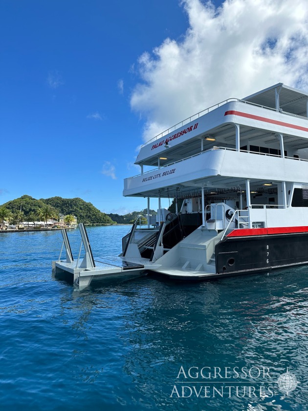The Palau Aggressor II docks at the Neco Marine (Malakai) Harbor in Palau.