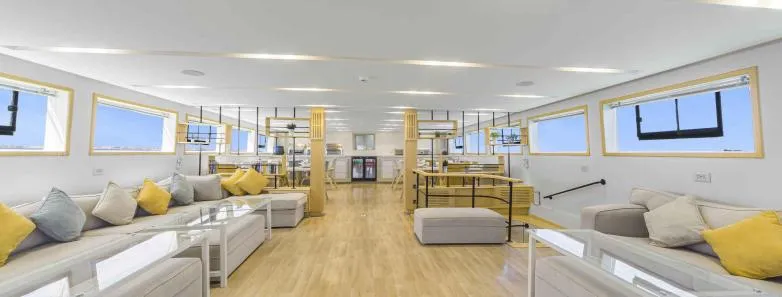 Accommodations are offered in 1 suite and 12 twin bed cabins all with en-suite facilities. There are 8 twin cabins located on the lower deck, while the rest of the cabins are located on the upper deck and come with a sea view. The Suite offers a panoramic view of the surroundings, providing spacious and cozy accommodations.