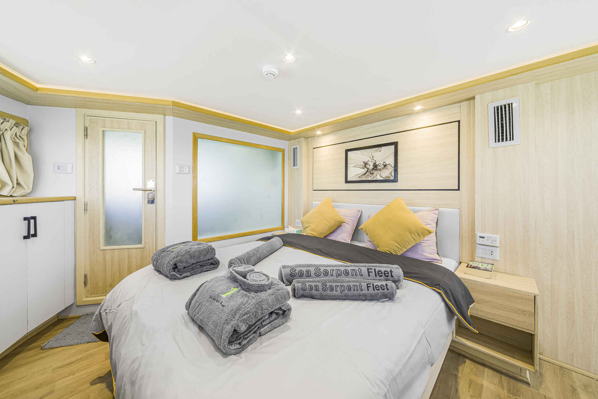 Cabin amenities: towels, bathrobes