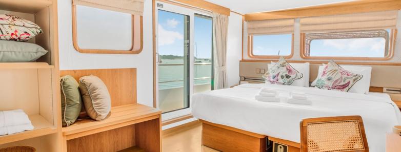 Step aboard Solitude Gaia and experience comfort and convenience at every turn. Located on the Upper Deck are 2 Oceanview Staterooms, and 1 Upper Deck Oceanview Cabin. The Main Deck offers 4 Oceanview Cabins, and an additional 2 Interior Cabins are located Below Deck.
