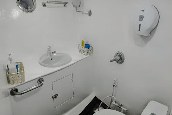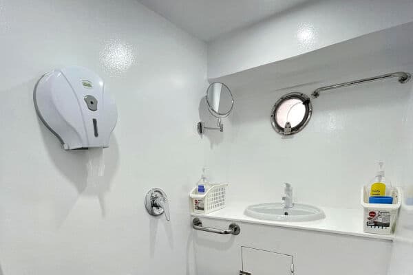 The Sunshine features 10 comfortable cabins spread across the lower and upper decks, each designed with twin single beds and essential amenities such as air-conditioning, hot water showers, toiletries, and daily housekeeping. All cabins offer en suite bathrooms and Wi-Fi access, providing a restful space between dives. With a cozy, functional layout and thoughtful touches, accommodations onboard are ideal for relaxing after a full day of exploring the Red Sea.