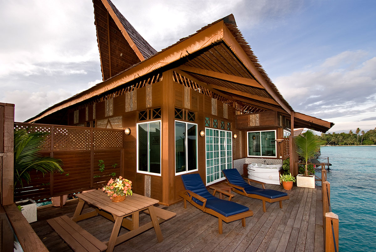 Indulge in luxury with our stilted wooden bungalows, featuring modern furnishings, private balconies with stunning sea views, and top-notch amenities.