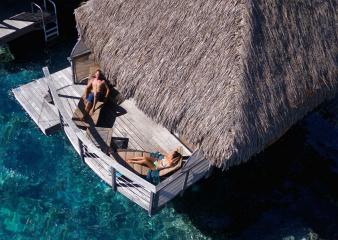 These Overwater Bungalows are facing the mountains within a shallow lagoon. All Overwater Bungalows feature a king-size bed, a bathroom with a shower or bathtub, and a large sundeck with direct access to the lagoon.