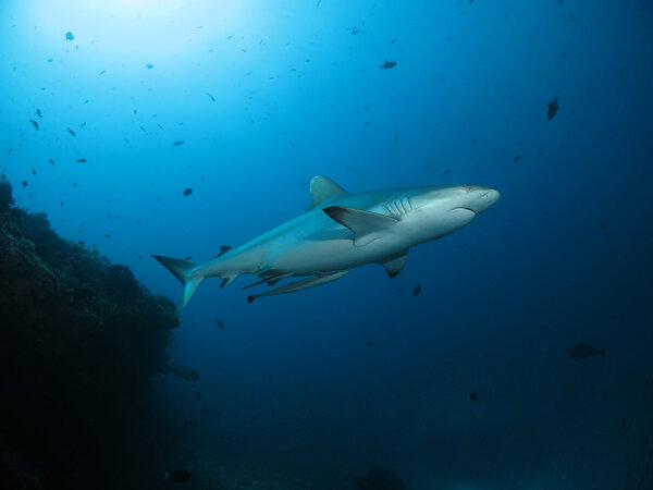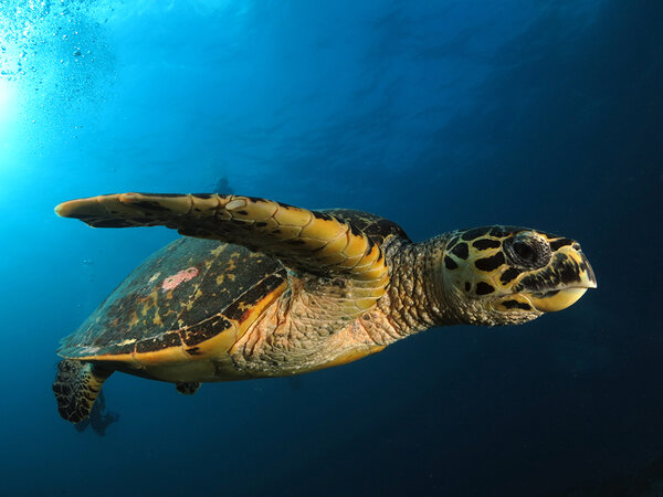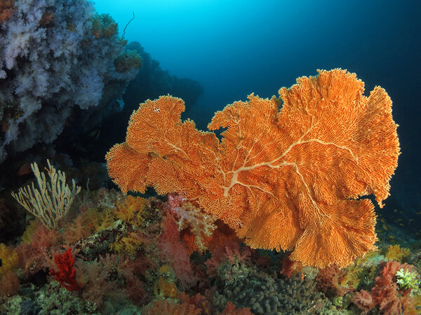 Healthy reefs, soft corals, mantas, whale sharks, schooling gray reef sharks, hawksbill turtles and more.