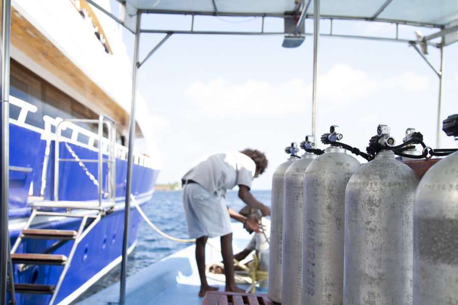 - You will be greeted by our Airport staff at Velana International Airport. They will guide you to the boat for boarding where you will be welcomed with refreshments. General briefing of the boat and diving will be provided by the boat crew. The boat will set sail to the first Dive site.
