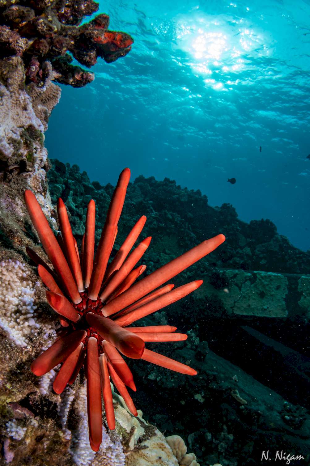 These two sites on the south coast of Lanai offer stunning topography, rare corals, and unique rock formations, ripe for exploring. The Cathedrals are large swim-throughs with fragmented rock 'windows' allowing light to filter through in a stained-glass window effect. There are plenty of critters and some endemic species to discover among the nooks and crannies of these intriguing sites.