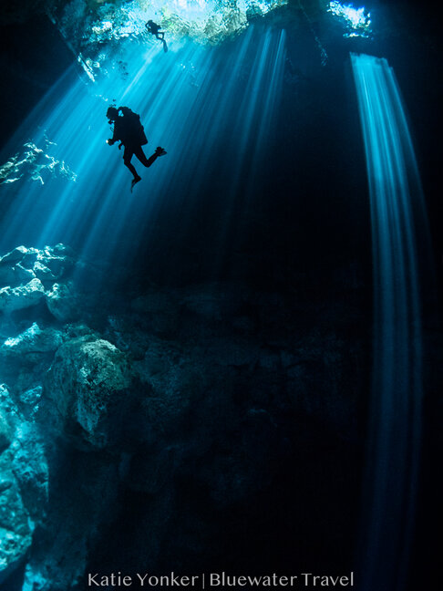 After an exhilarating time in Xcalak and Chinchorro, we headed back to Playa Del Carmen for a couple days of diving the cenotes. A cenote is a natural pit or sinkhole resulting from the collapse of limestone bedrock that exposes groundwater underneath, and these unique dives are not to be missed when visiting the Yucatan peninsula. What you won't find in marine life is made up for by stunning stalactite and stalagmite formations, piercing sunrays, and eerie layers of hydrogen sulfide. We started the morning off early by visiting The Pit, a well-known cenote deep in the jungle known for stunning sunbeams. Though it was a bit overcast and drizzly when we arrived, the clouds cleared allowing for some beautiful shots.