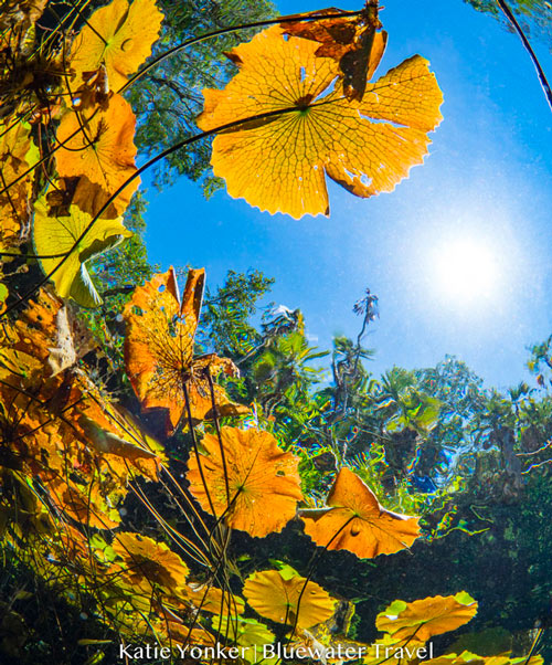 Our next stop was Cenote Nichte-ha. We dived here in lieu of the more well-known Car Wash cenote, and it did not disappoint. There were fewer crowds and the lake of lily pads provided ample shots for photography. At times, this cenote had surprisingly minimal clearance between rock formations, and is therefore best suited for divers who are very comfortable with their buoyancy.