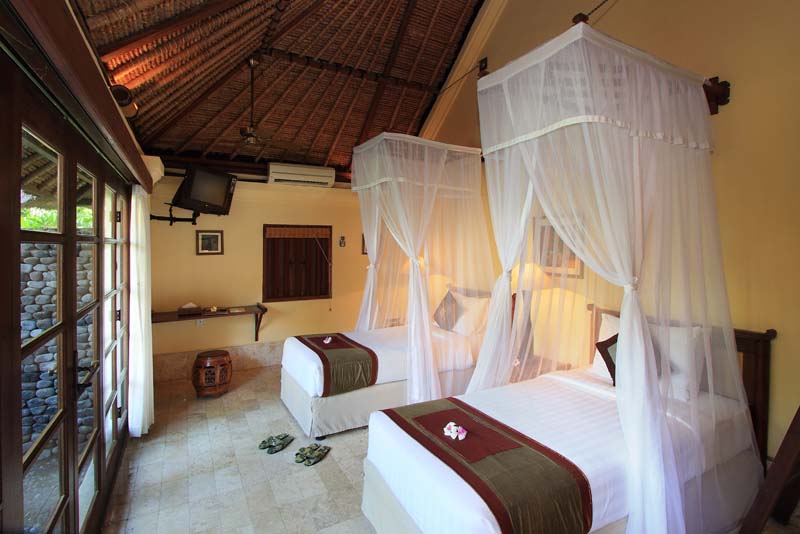 This budget-friendly Standard Patio Room offers comfort and charm near Tulamben’s dive sites, featuring a cozy porch—perfect for relaxing with a fresh young coconut.