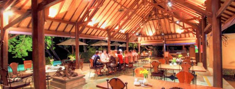 Menu at the restaurant is varied with Western and Asian selections as well as local cuisines, to suit every taste. A bar beside the restaurant serves a variety of both alcoholic and non-alcoholic beverages.