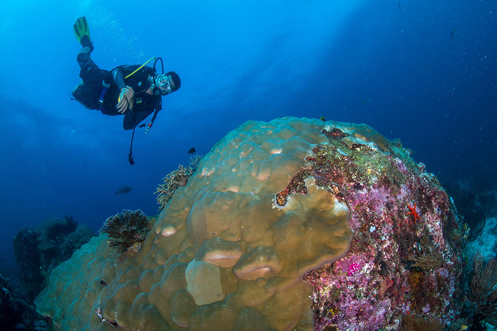 Indonesia offers some of the world's best diving due to its location within the heart of the coral traingle. It hosts one of the highest numbers of fish species in the world, over 600 species of hard corals, and some incredible macro subjects. Common encounters in the region include manta rays, jacks, barracuda, Napoleon wrasse, trevally, shrimps, eels, seahorse, plus a variety of shark species including back tips, white tips, and wobbegong, the list goes on. Water temperatures averaging 82-84F (28-29C) and incredible visibility make for some very comfortable diving.