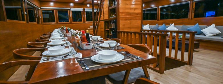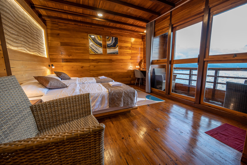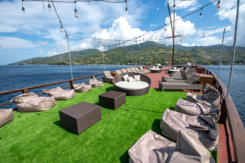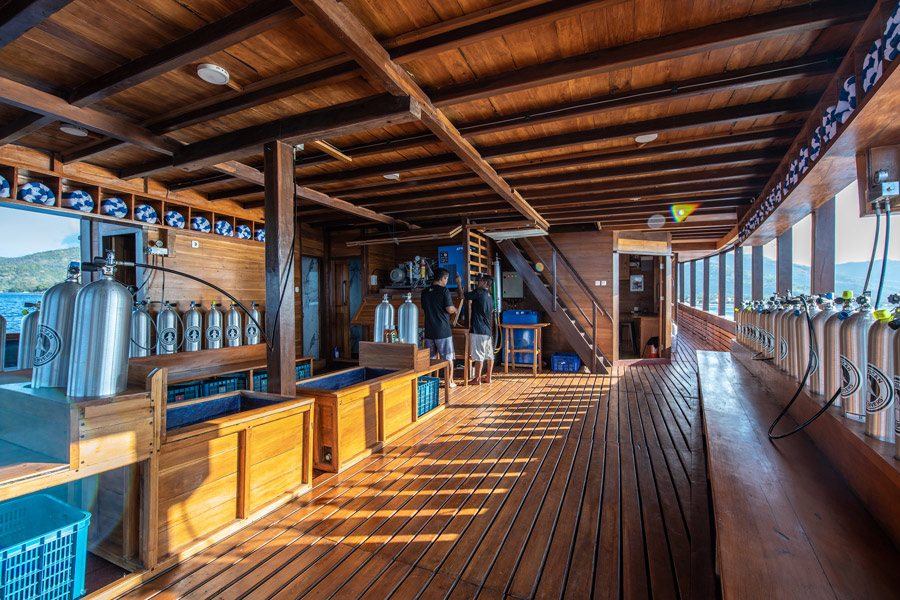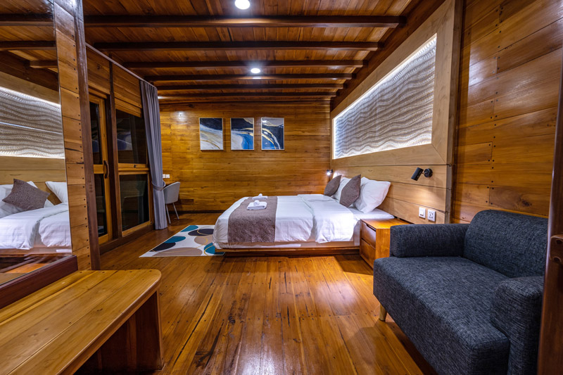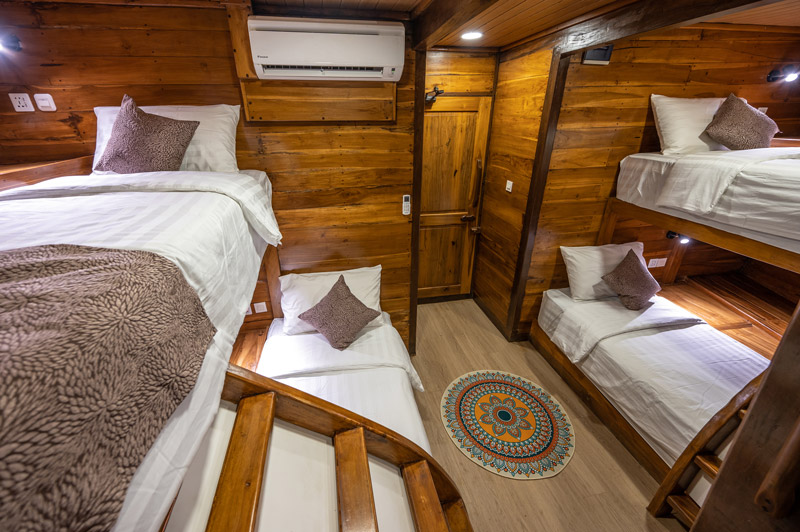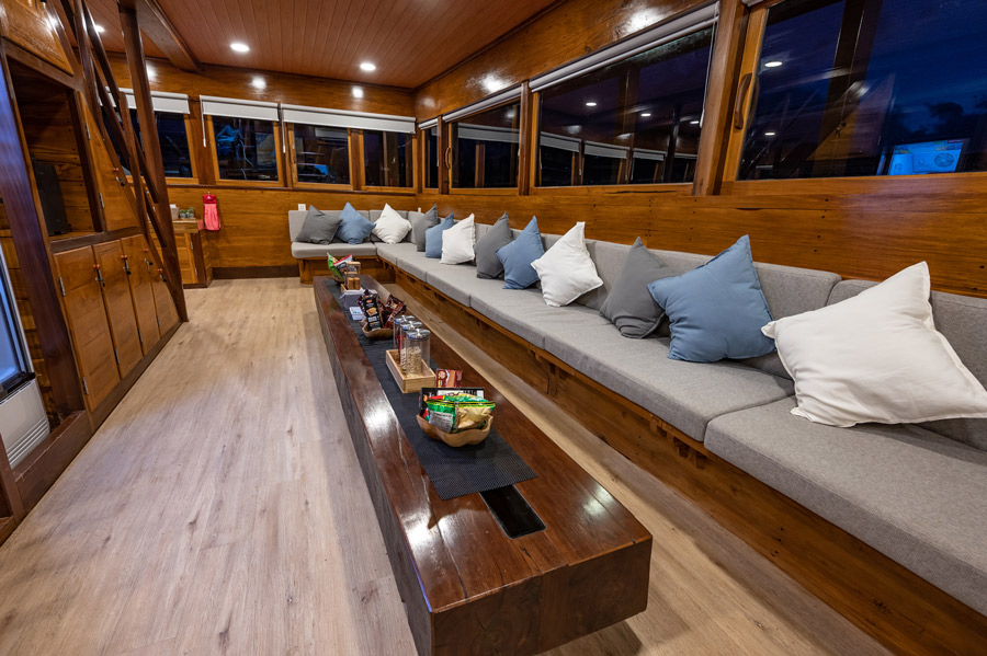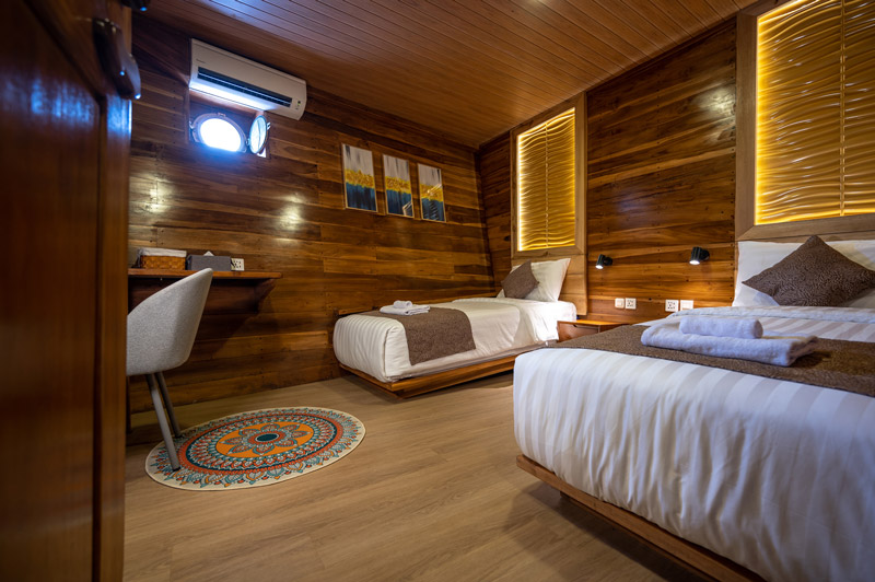 Mola Mola 2 liveaboard hosts a maximum of 20 guests in it's 9 stylish teak wood cabins, each of which is fully equipped with air conditioning and en suite bathroom with hot water.