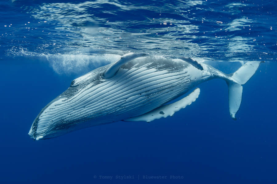 Each year, humpback whales in both the northern and southern hemispheres spend the summer months in frigid polar waters, feeding constantly and storing energy in preparation for an epic migration to tropical locales such as French Polynesia. Having arrived in the warm, relatively protected waters of the tropics, they spend several months socializing and mating, while pregnant females give birth and nurse their newborns. During this time, the calves grow at an incredible rate, sustained by roughly 100 gallons of rich milk dispensed by the mother each day. This helps them gain the size and strength they will need in a just few months to swim all the way back to Antarctica.