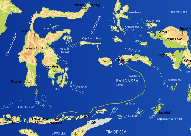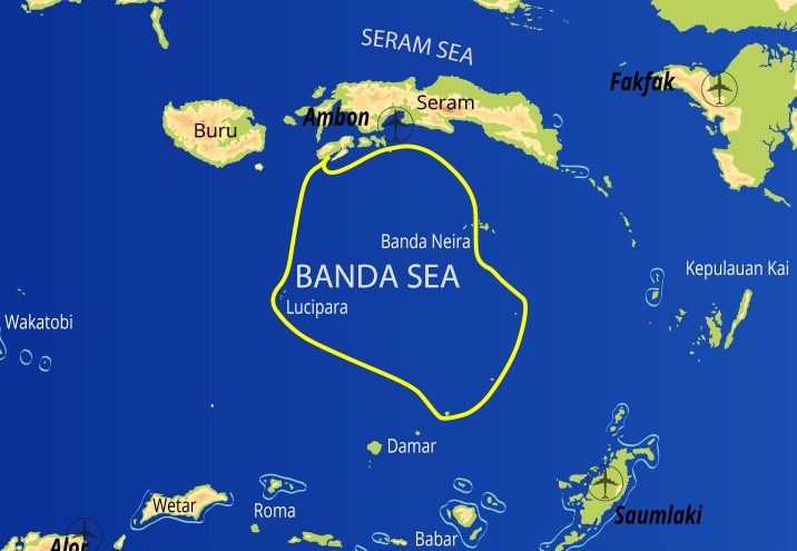 Banda Sea Dive Overview - This may not be the cruise destination for every diver, more for adventure divers and not for novice divers. Unexpected sightings can happen though they may not occur on every trip. This area changes and every trip is very different. Currents can be varied, depending on the moon phase. Especially in the bay of Ambon. Expect critters, unspoiled dive sites, wall drift dives, sea snakes, clear & warm water, volcanos, unexpected encounters, spice trek.