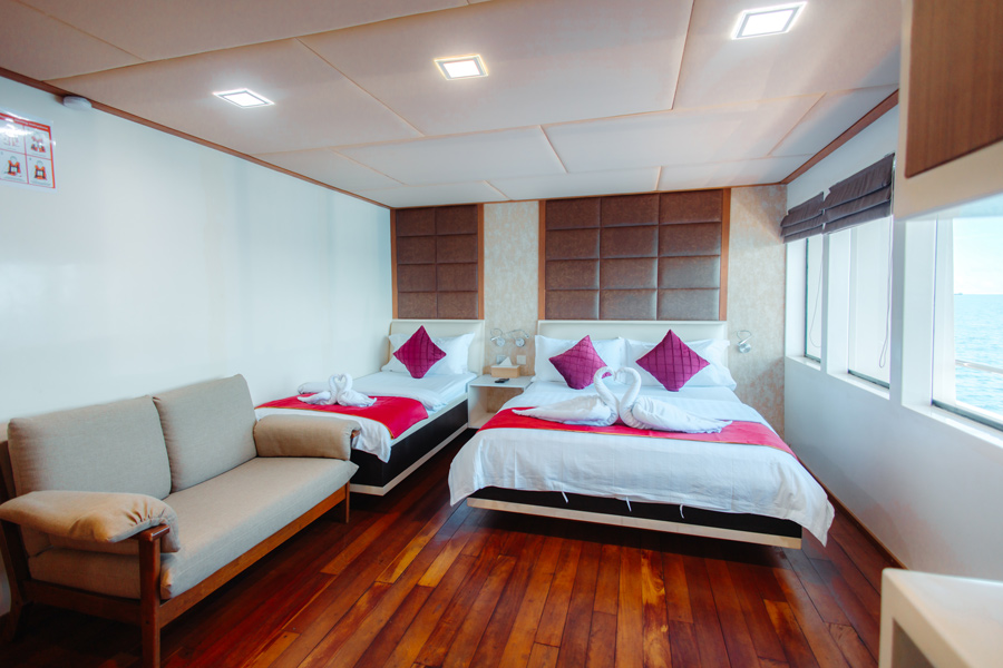MV Adora offers a luxurious and comfortable accommodation experience designed to enhance your stay during the scuba diving liveaboard in the Maldives. The vessel features three types of well-appointed cabins, ensuring a range of options to suit various preferences. The Standard Room provides a cozy and inviting space for relaxation, while the Ocean View Suites (Deluxe Room) offer the added perk of stunning views of the surrounding ocean. For those seeking an elevated experience, the Superior Room provides a premium and spacious setting. All cabins are fully air-conditioned, emphasizing the commitment to your comfort throughout the liveaboard cruise.