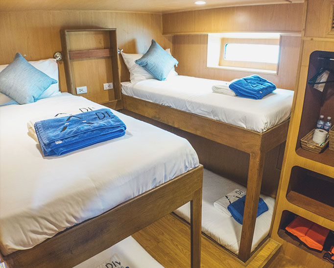 - The twin / Quad ensuite cabin comes with 4 single beds in double deckers style.