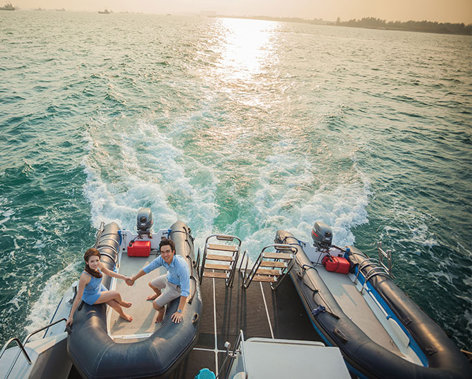 Sumptuous western or Asian meals made by their capable chefs ensure that guests always enjoy their food. Get a freshly ground coffee on the house or a bottle of red wine to celebrate on board.
