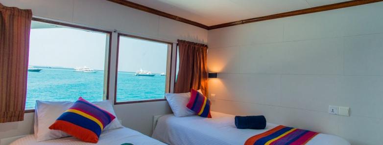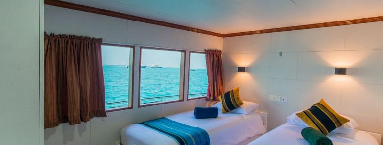 Upper deck (LEFT) & main deck twin (RIGHT) cabins with stunning views