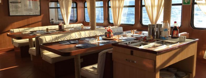 They serve international food and Mexican food on the liveaboard, M/V Valentina. Japanese food is also sometimes available. You can drink authentic cocktails, such as a popular local beer, and similar drinks by ordering from the bartender. Less common on a liveaboard, they also offer freshly squeezed fruit juice (free.)